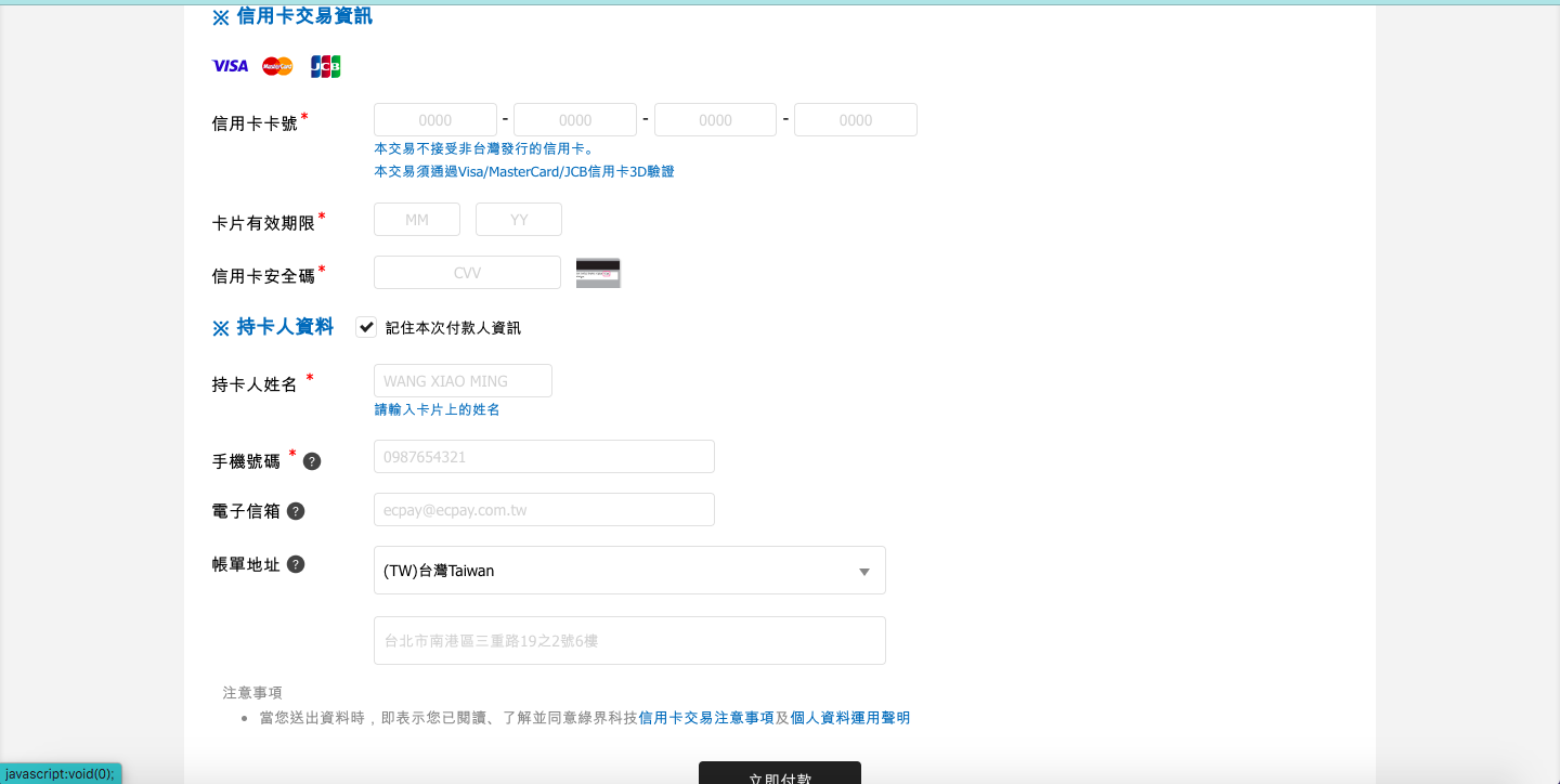 輸入資料後 確認信息都無誤之後按下<使用信用卡付款>(金融卡也是可以的別擔心)